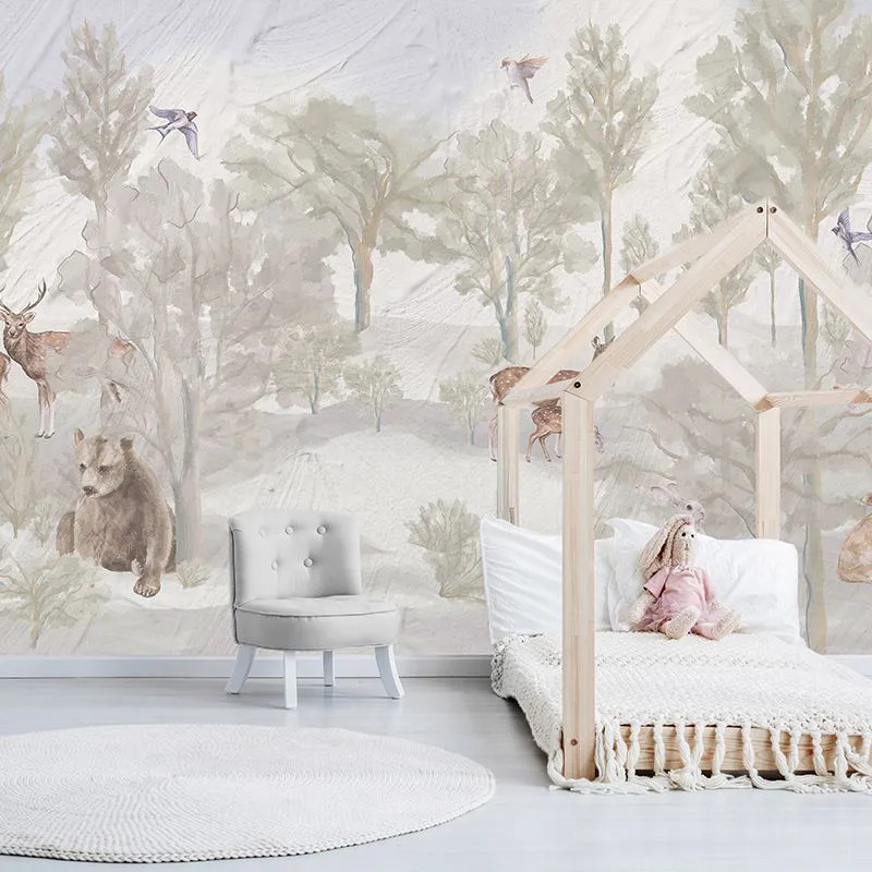 The Foggy forest faun wallpaper in colour is part of the Enchanted Forest collection, a series of wallpapers for children. Full of colour and magical characters, this wallpaper brings good cheer to any space. So it's perfect for nurseries, children's rooms or schools.